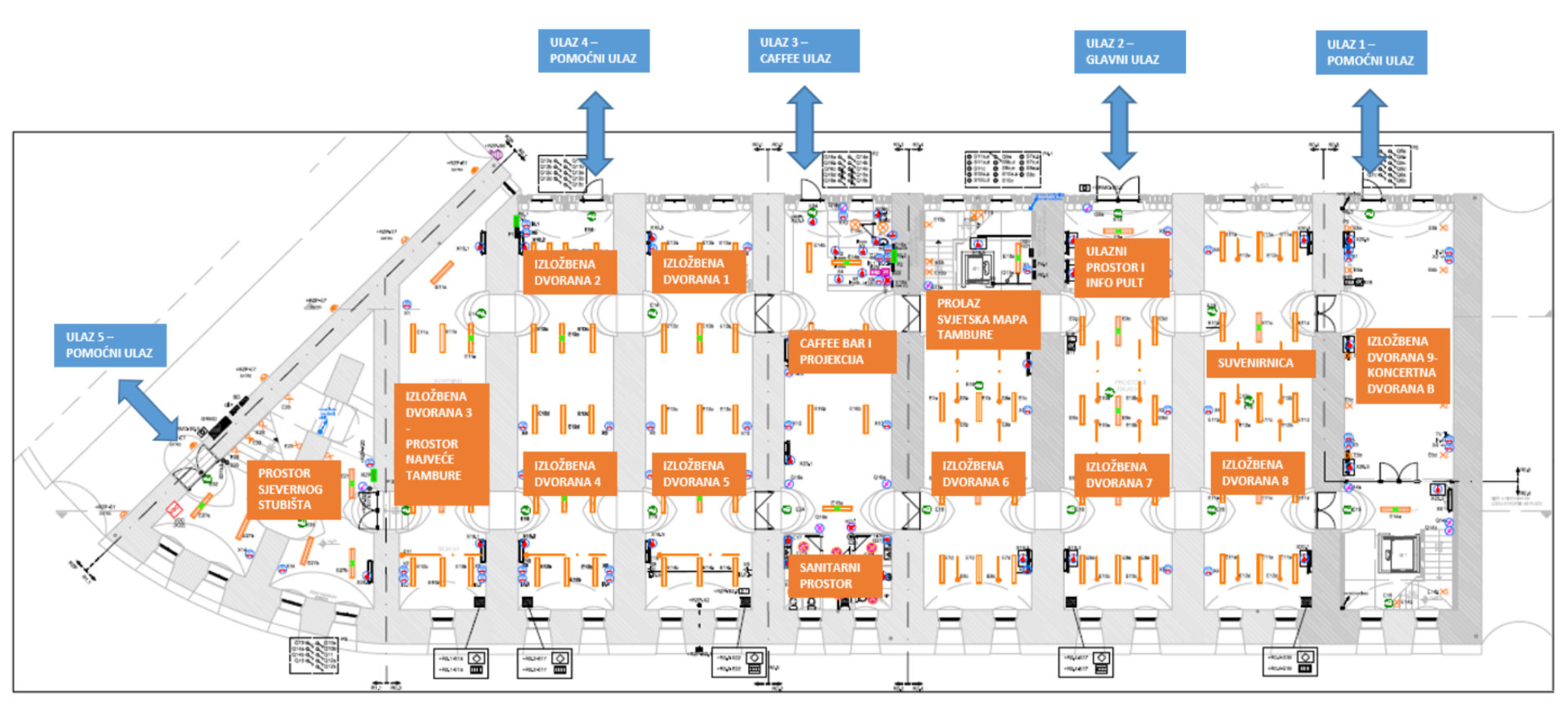 - Prolaz (interaktivni ekran Svjetska mapa tambure) i prostor dizala